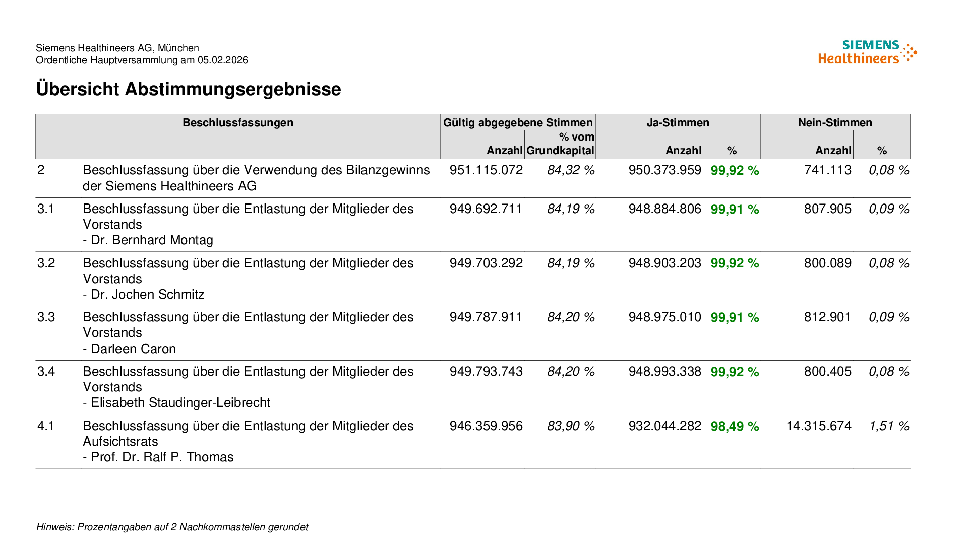 Beschlussfassung über die Verwendung des Bilanzgewinns der Siemens Healthineers AG