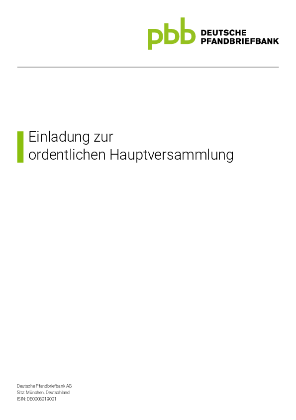 Die Beschlüsse der Hauptversammlung von Deutsche Pfandbriefbank AG werden im Anschluss der Hauptversammlung hier veröffentlicht.