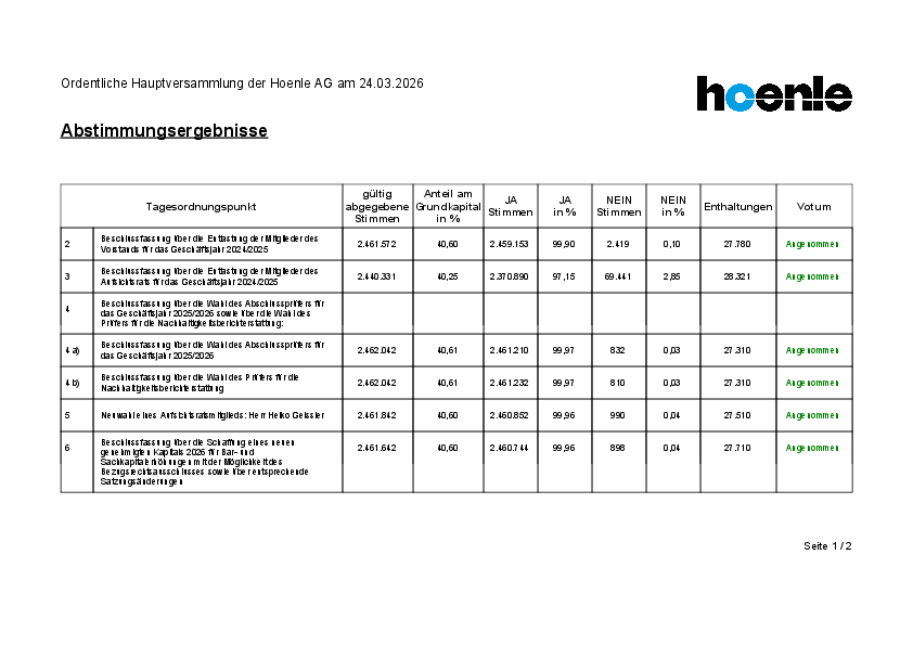 Aktuell wurden über die Gesellschaft folgende Beschlüsse veröffentlicht:
