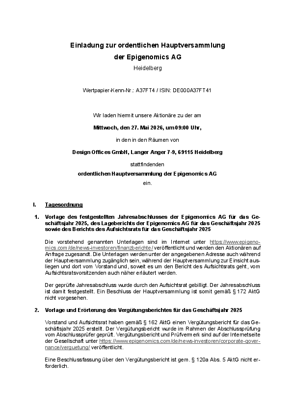 Hauptversammlung Epigenomics AG