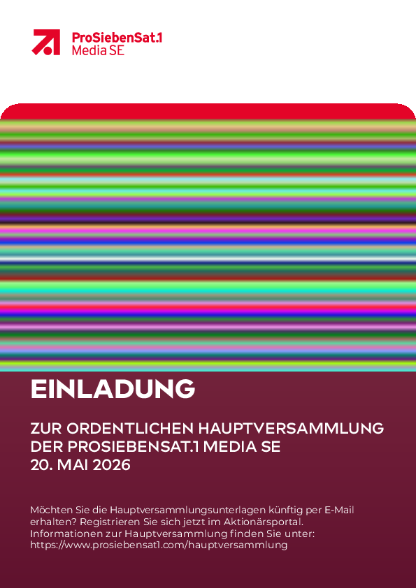 Die Beschlüsse der Hauptversammlung von ProSiebenSAT.1 Media SE werden im Anschluss der Hauptversammlung hier veröffentlicht.