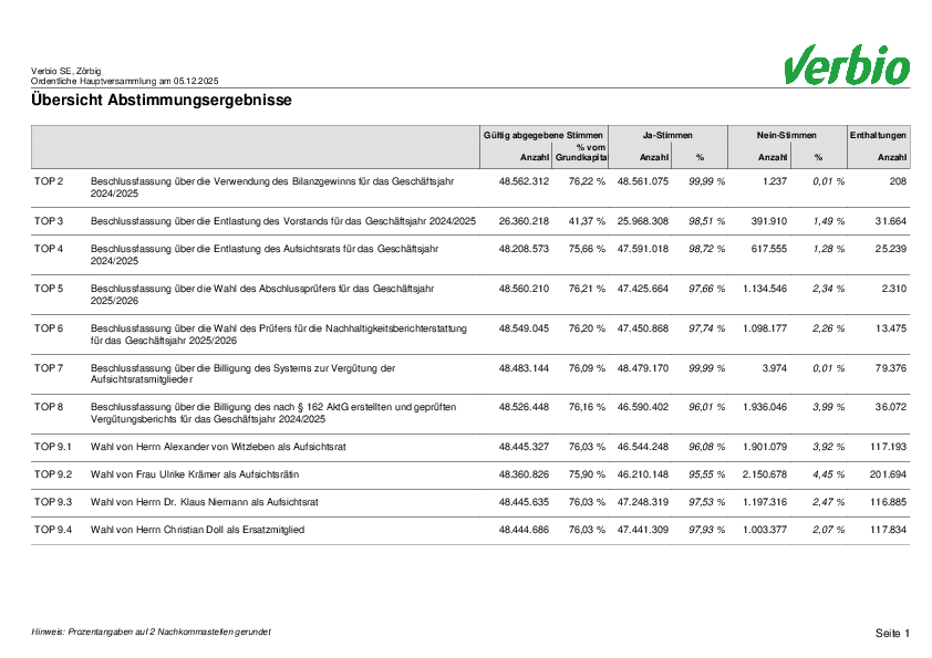 Die Gegenanträge zur Hauptversammlung von VERBIO Vereinigte BioEnergie AG werden hier veröffentlicht.