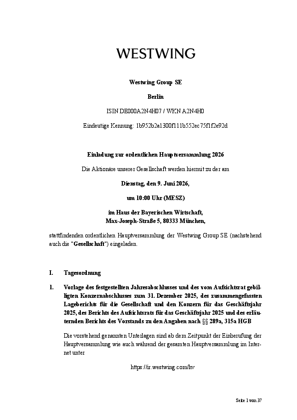 Die Beschlüsse der Hauptversammlung von Westwing Group AG werden im Anschluss der Hauptversammlung hier veröffentlicht.
