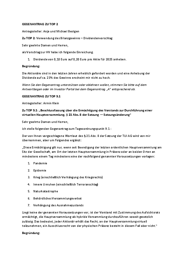 Aktuell wurden über die Gesellschaft folgende Gegenanträge veröffentlicht: