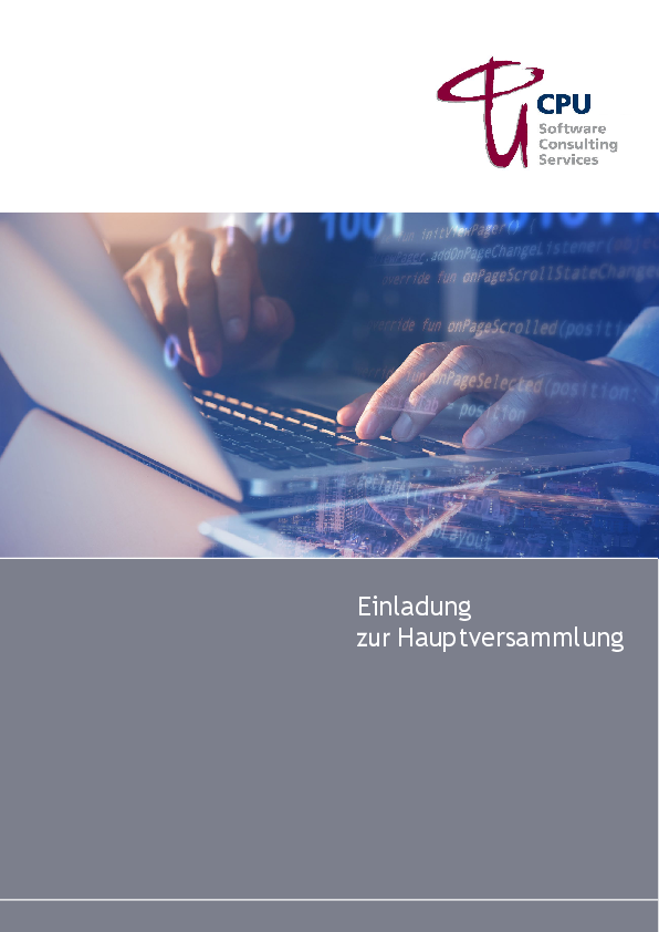 Die Beschlüsse der Hauptversammlung von CPU Softwarehouse AG werden im Anschluss der Hauptversammlung hier veröffentlicht.