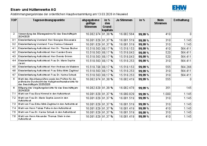 Unseren Abstimmungsempfehlungen liegen die DSW-Richtlinien zur Stimmrechtsausübung zugrunde. Weitere Informationen zu den DSW-Richtlinien erhalten Sie hier.