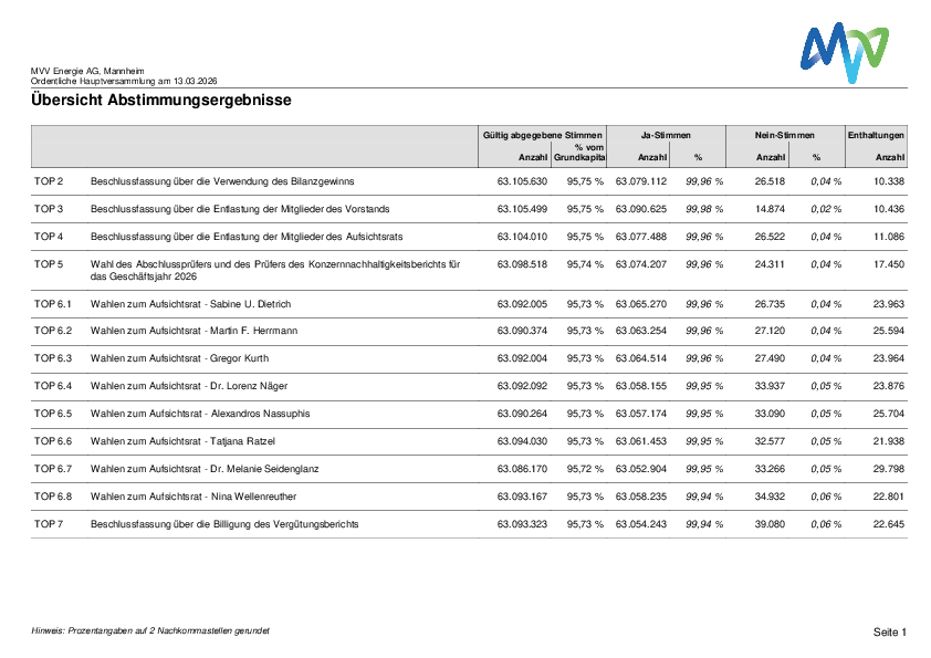 Unseren Abstimmungsempfehlungen liegen die DSW-Richtlinien zur Stimmrechtsausübung zugrunde. Weitere Informationen zu den DSW-Richtlinien erhalten Sie hier.