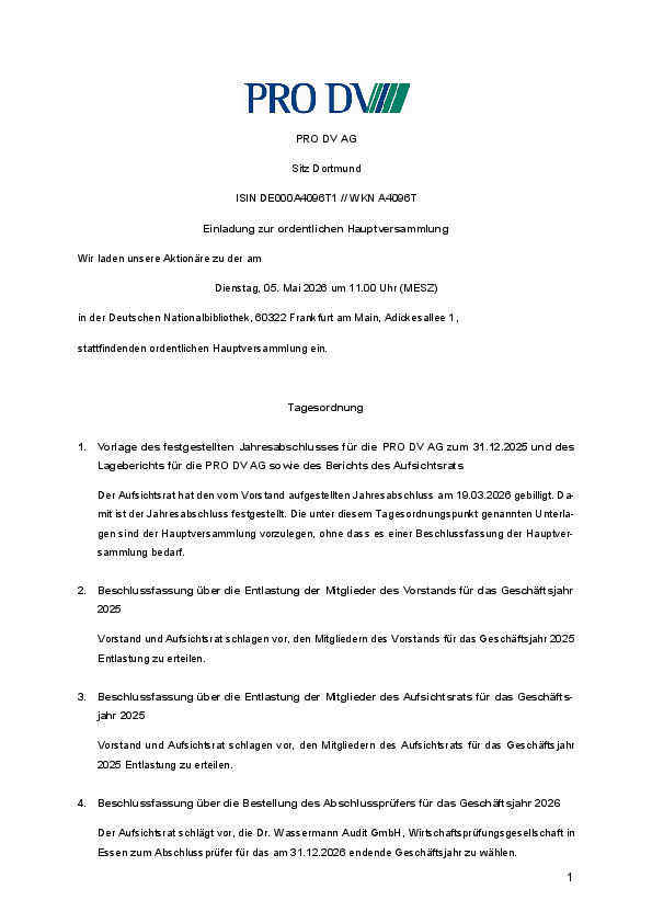 Tagesordnung und DSW-Empfehlungen