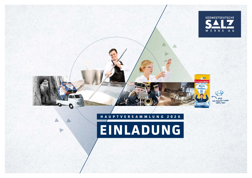 Die Beschlüsse der Hauptversammlung von Südwestdeutsche Salzwerke AG werden im Anschluss der Hauptversammlung hier veröffentlicht.